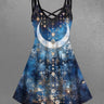 Gothic Plus Size Moon Star Castle Ombre Galaxy Print Crisscross Strappy A Line Cami Dress