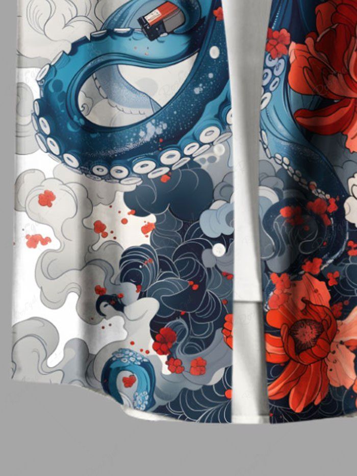 Gothic Plus Size Octopus Floral Cloud Print Hawaii Button Pocket Shirt For Men