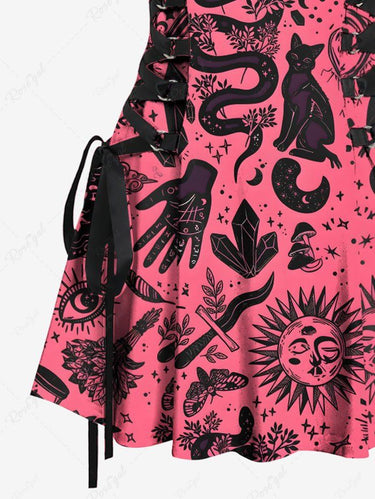 Gothic Sun Floral Snake Cat Print Lace Up A Line Tank Dress