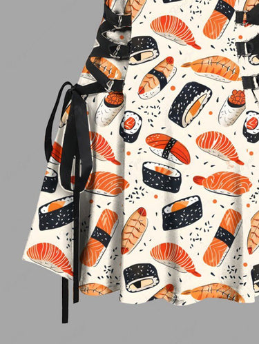 Gothic Sushi Salmon Print Lace Up A Line Tank Dress