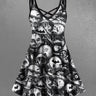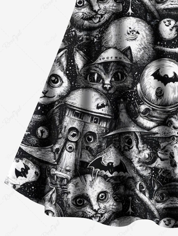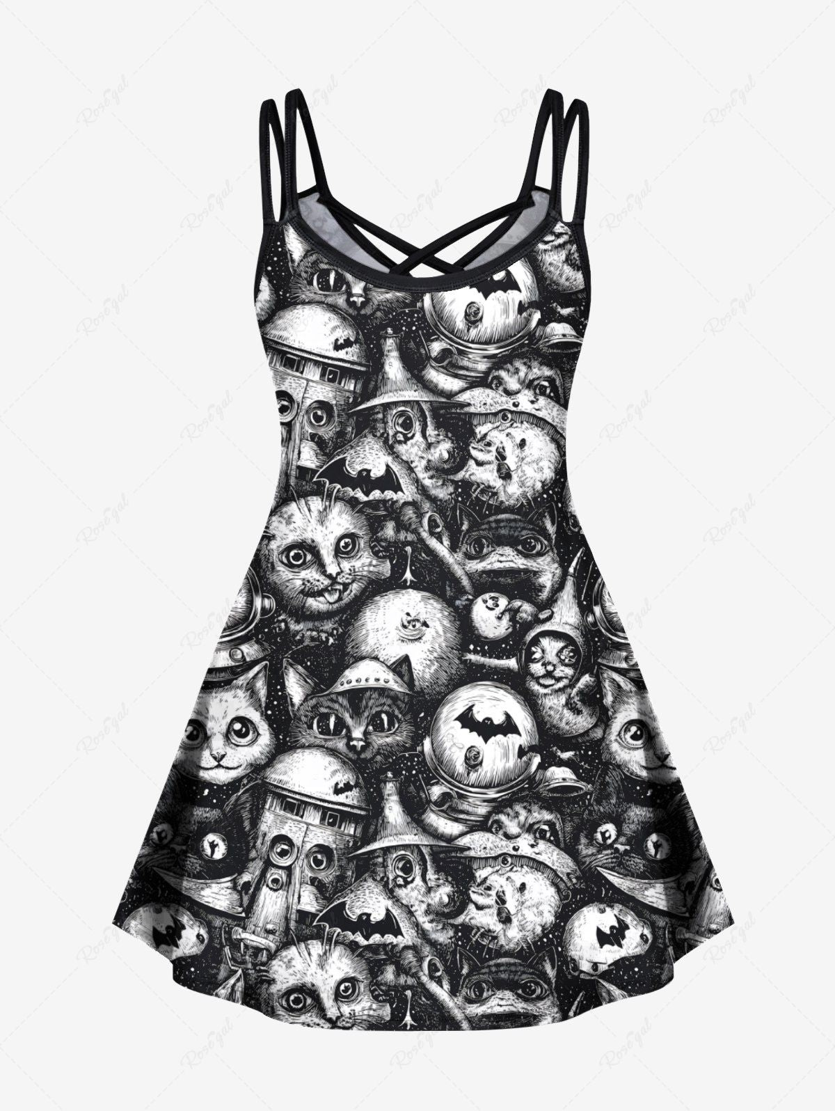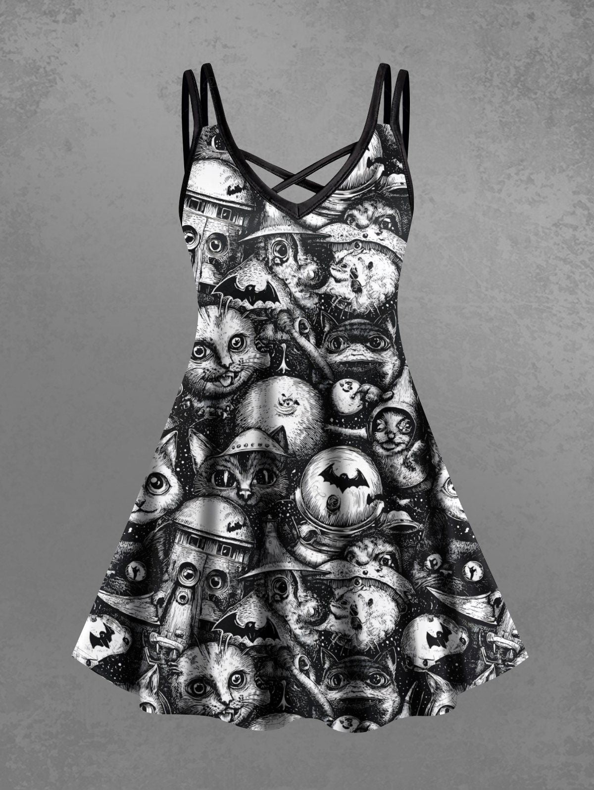 Gothic Plus Size Cat Bat Print Halloween Crisscross Strappy A Line Cami Dress