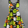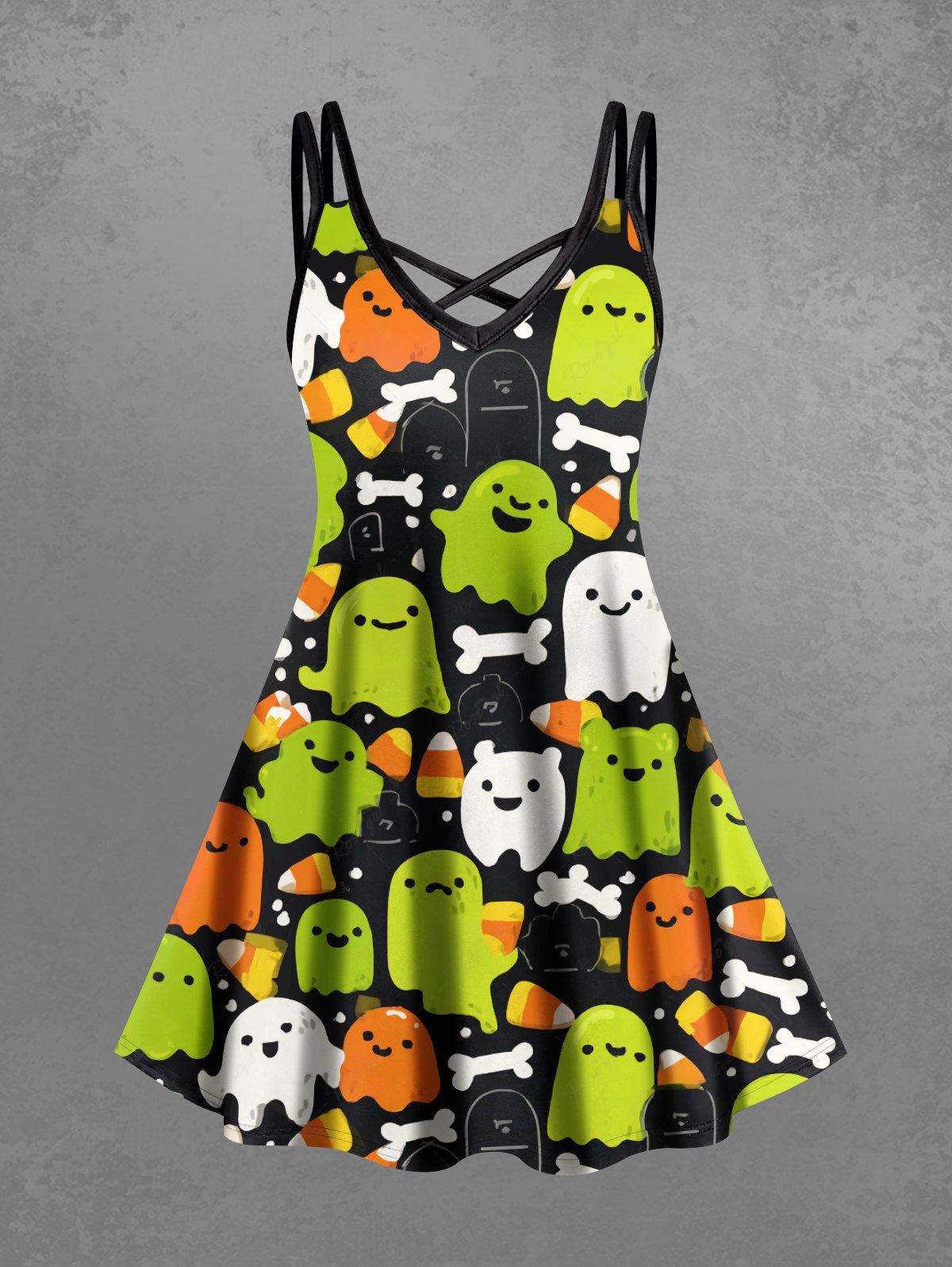 Gothic Plus Size Cute Ghost Bone Print Halloween Crisscross Strappy A Line Cami Dress