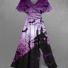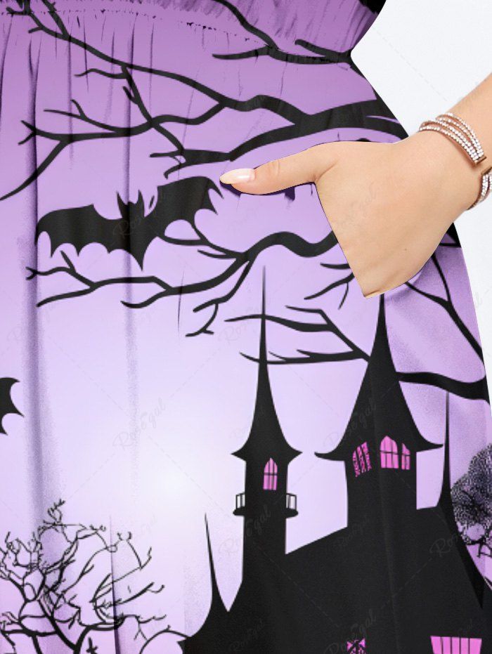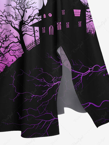 Gothic Plus Size Halloween Bat Tree Castle Print Split Midi Dress