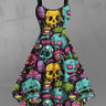 Gothic Plus Size Halloween Skulls Flowers Cake Cup Print Tank Dress