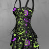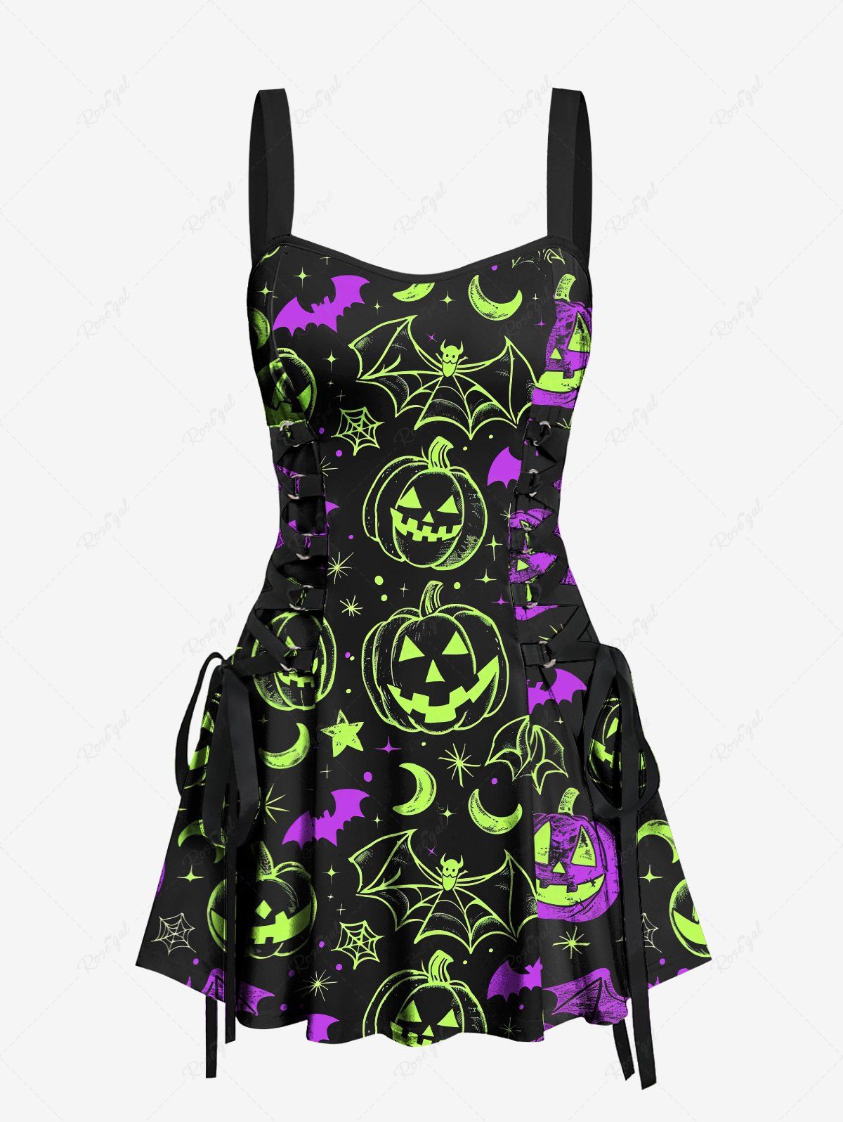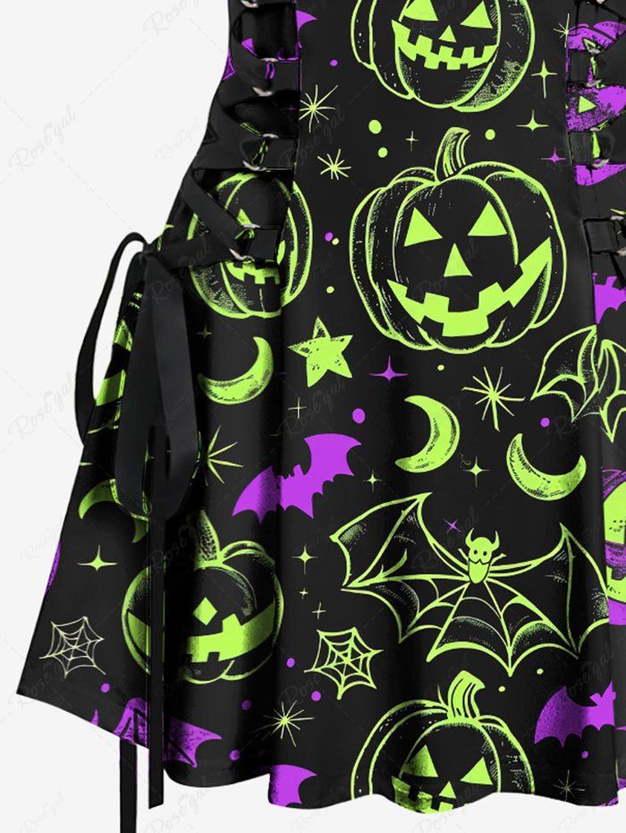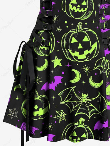Gothic Pumpkin Lantern Bat Spider Web Moon Star Galaxy Print Halloween Lace Up A Line Dress