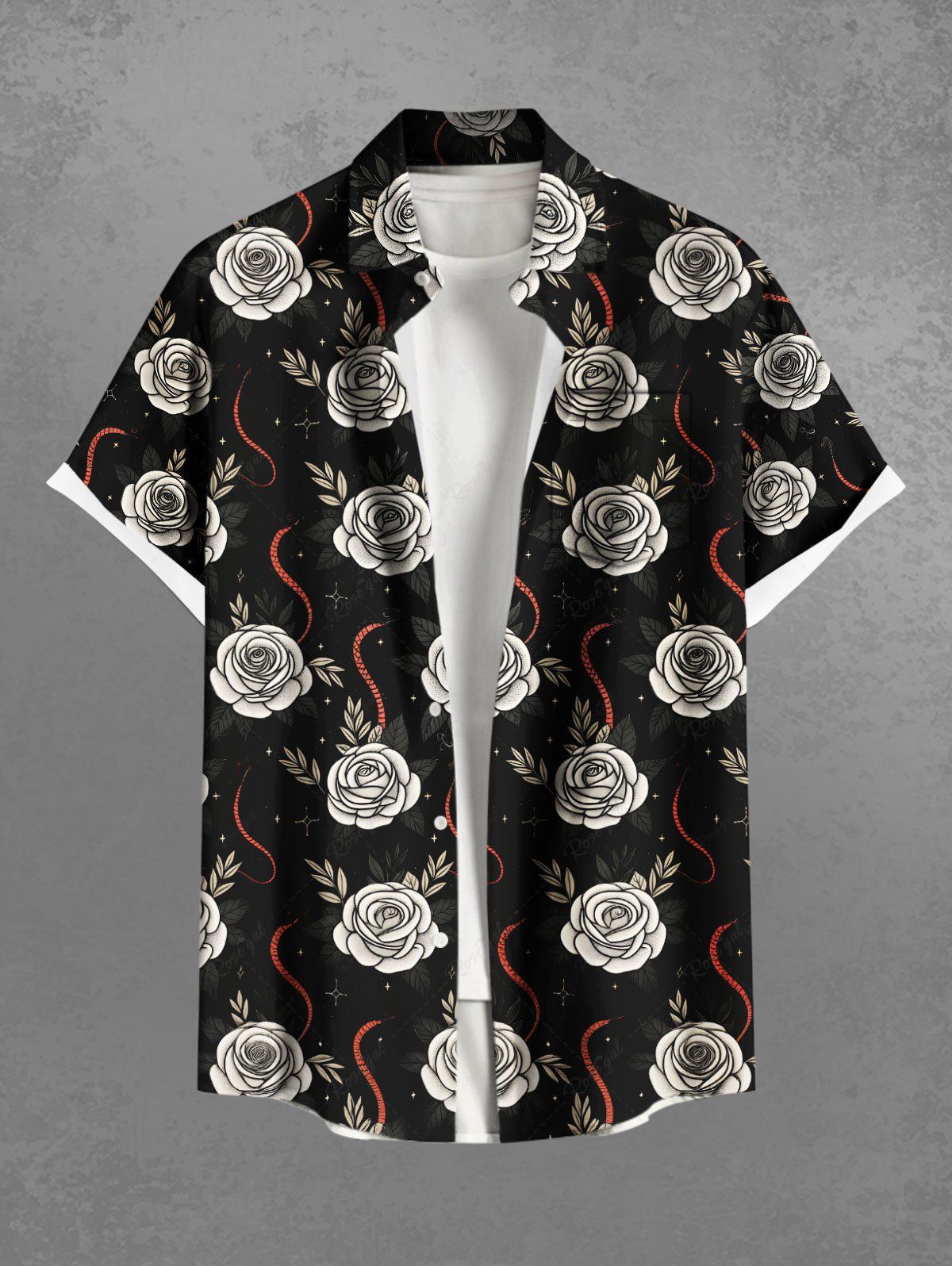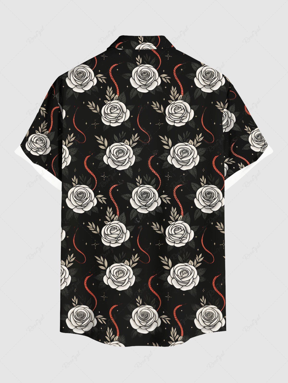 Gothic Plus Size Rose Flower Snake Print Button Pocket Shirt For Men