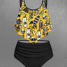 Gothic Plus Size Skull Lemon Juice Boat Print Peplum Hem Hawaii Backless Tankini Swimsuit (Adjustable Shoulder Strap)