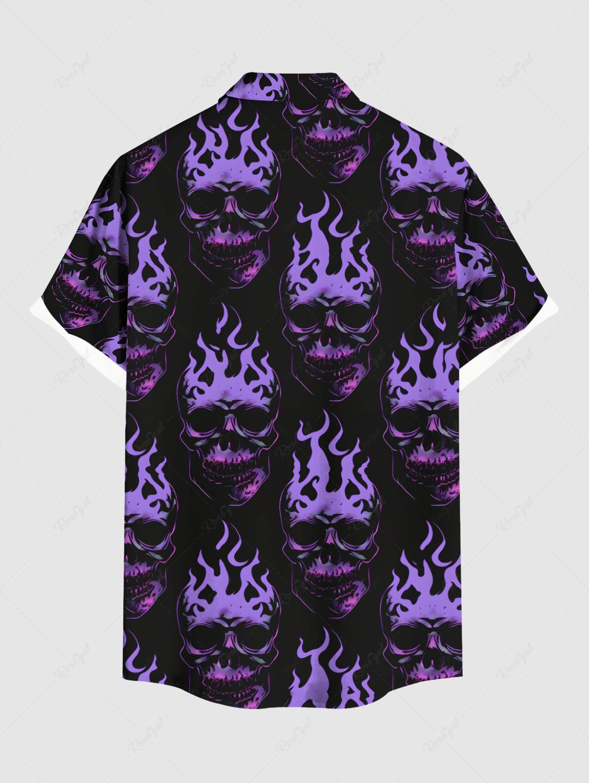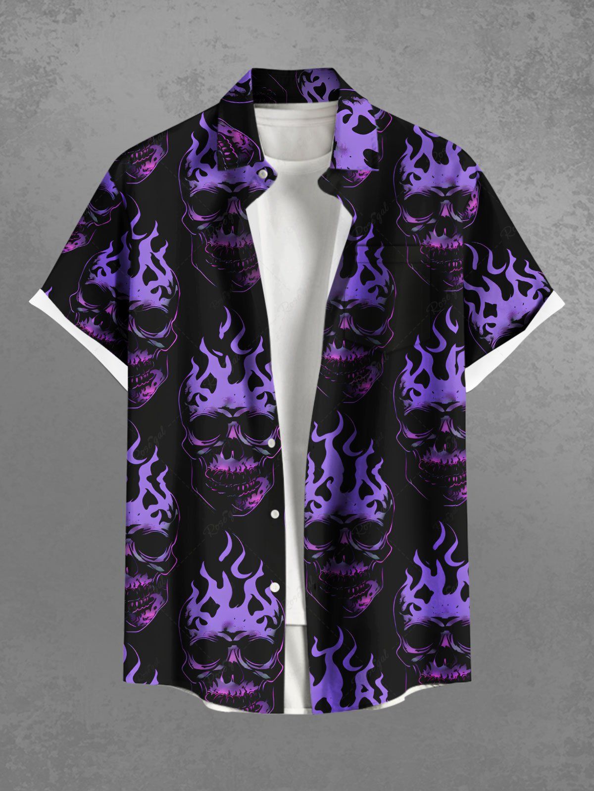 Gothic Plus Size Skull Fire Flame Print Button Pocket Shirt For Men