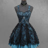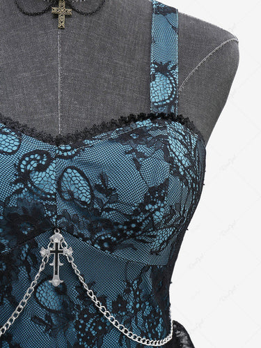 Gothic Floral Lace Overlay Cross Chain Layered Ruffles A Line Tank Dress