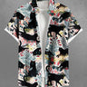 Gothic Plus Size Floral Leaves Branch Cat Print Button Pocket Shirt For Men