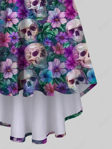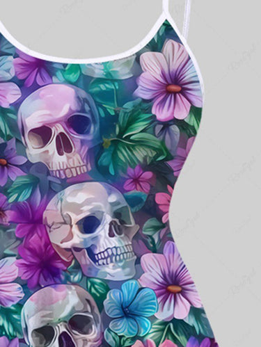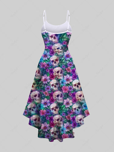 Gothic Plus Size Colorful Skulls Flower Print High Low Asymmetric A Line Cami Dress