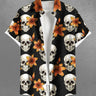 Gothic Plus Size Skull Floral Print Hawaii Button Pocket Shirt For Men
