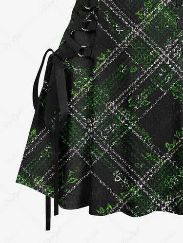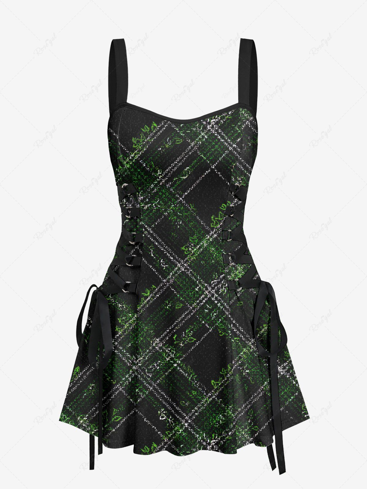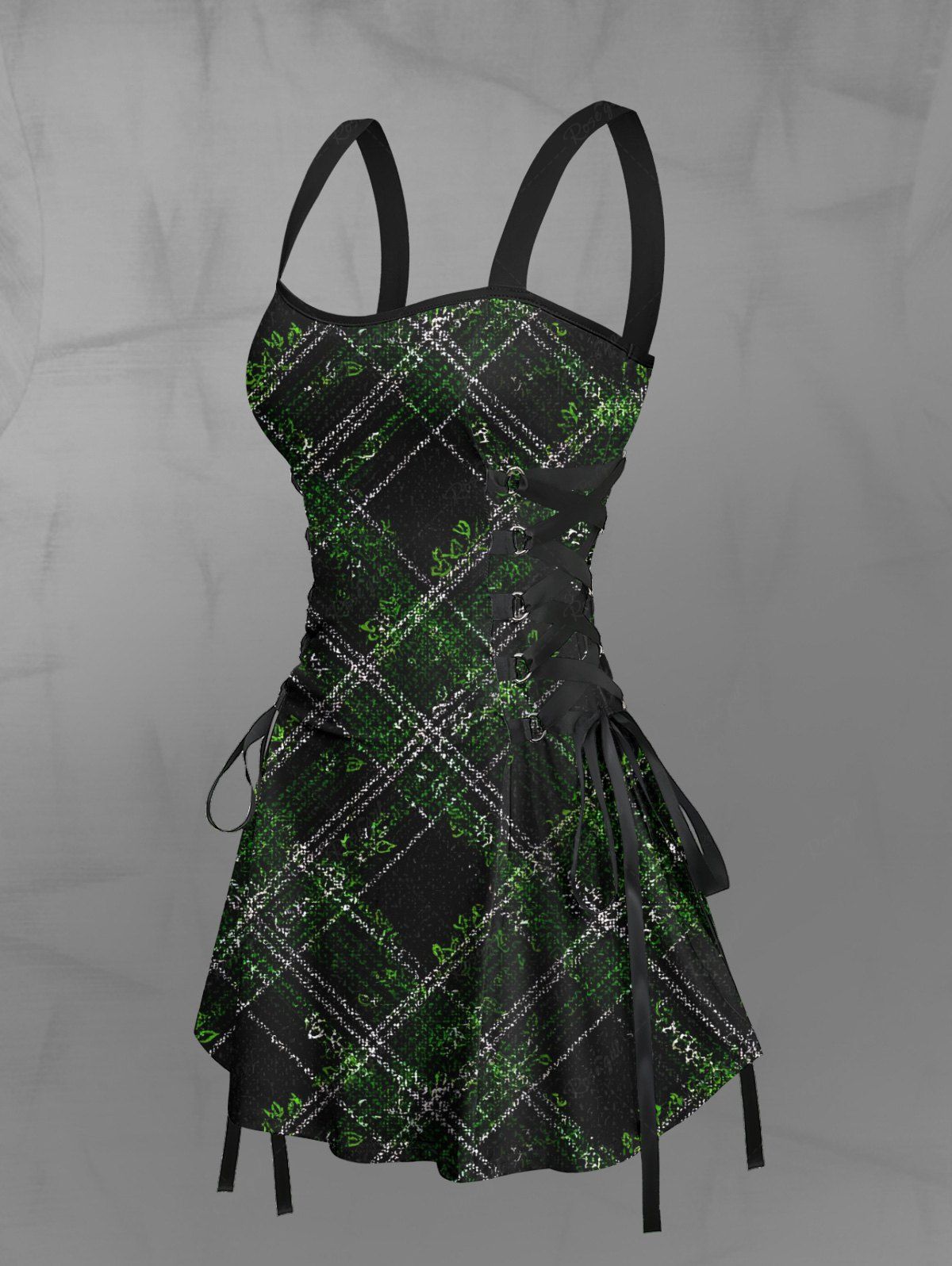 Gothic Geometric Plaid Print Lace Up A Line Dress
