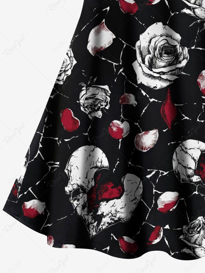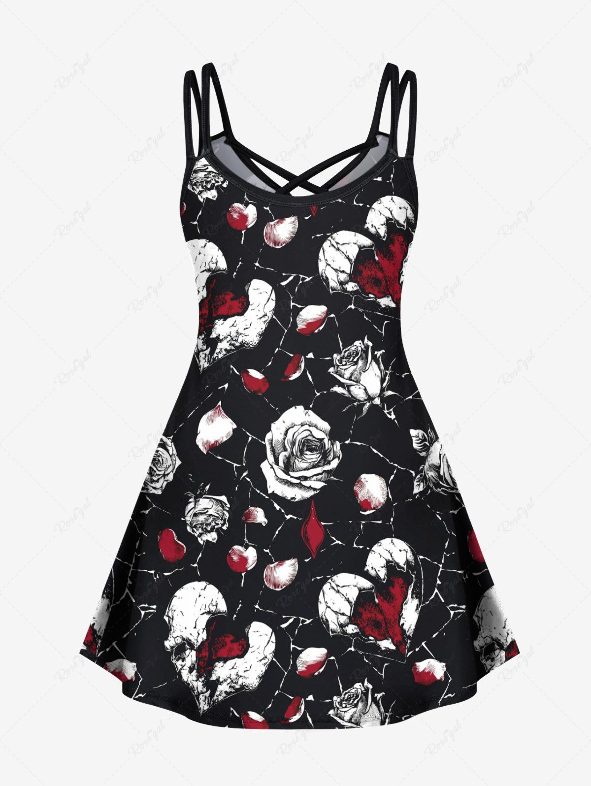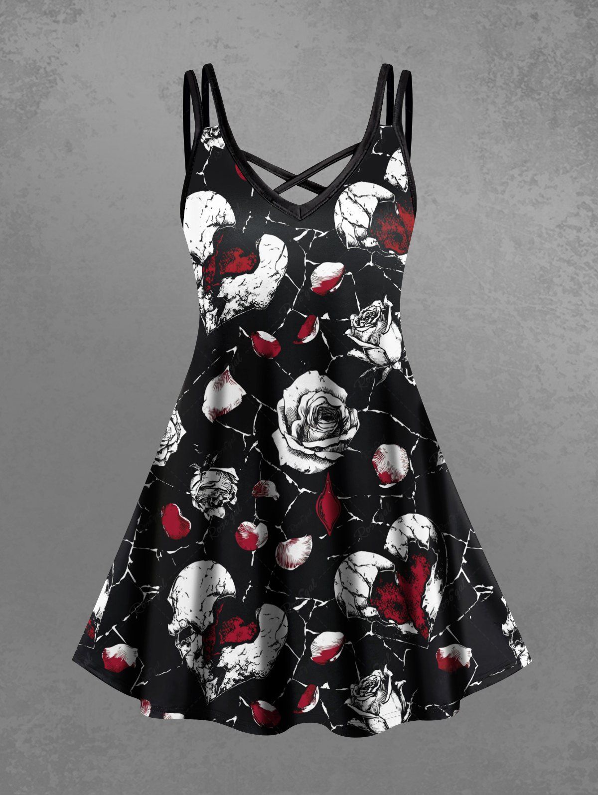 Gothic Plus Size Rose Flower Heart Print Valentines Crisscross Strappy A Line Cami Dress