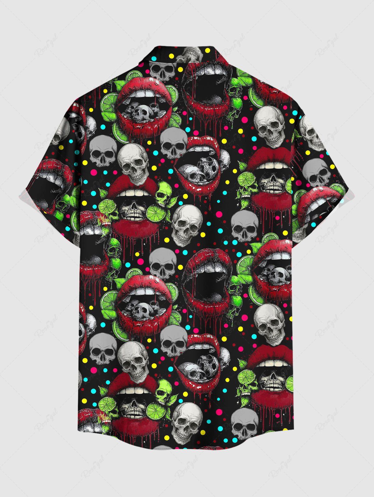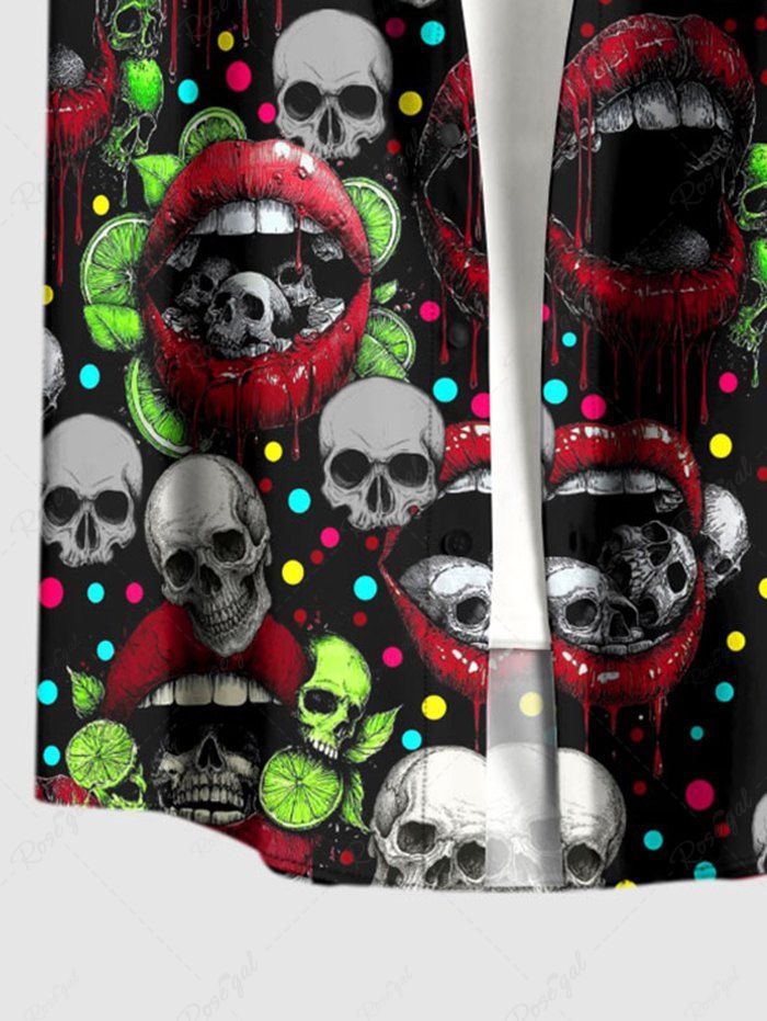 Gothic Plus Size Skull Lip Print Valentines Button Pocket Shirt For Men