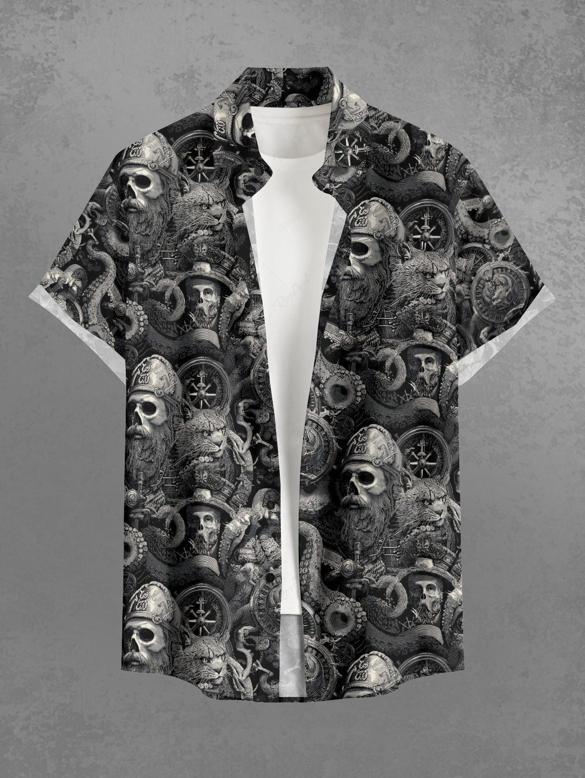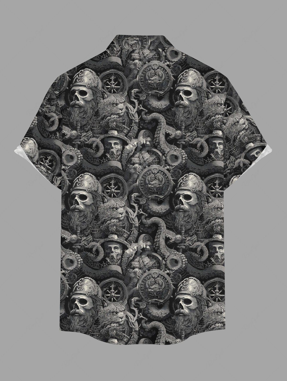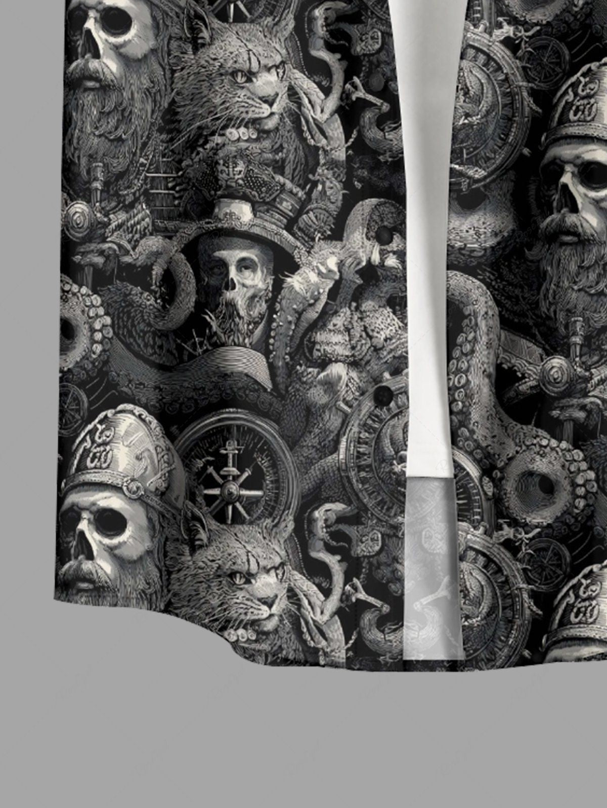 Gothic Plus Size Skull Pirate Octopus Print Hawaii Cruise Button Pocket Shirt For Men