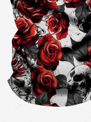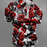 Gothic Plus Size Ink Painting Skull Leaves Rose Flower Print Zipper Turn-down Collar Polo Shirt For Men