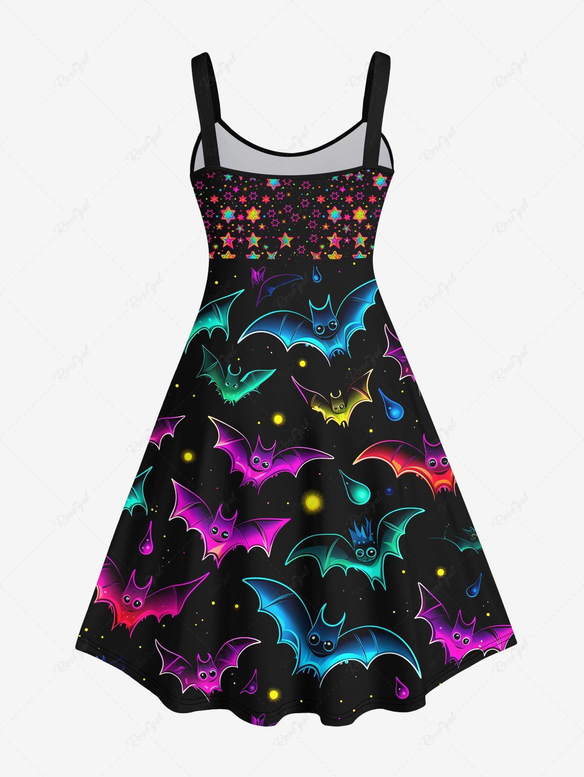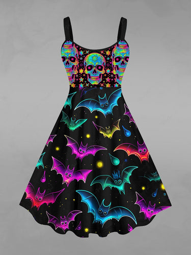 Gothic Plus Size Rainbow Colorful 3D Glitter Skulls Bats Stars Print Halloween Tank Dress