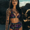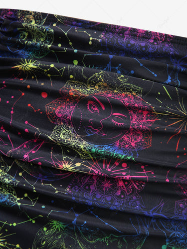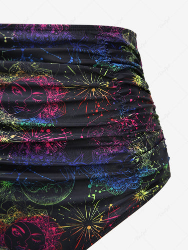 Gothic Colorful Ombre Sun Moon Star Symbol Galaxy Print Heart Buckle Halter Backless Bikini Set