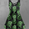 Gothic Plus Size Dragon Vintage Floral Print Crisscross A Line Cami Dress