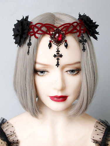 Gothic Flower Rhinestone Headband Party Cosplay Hair Accessory