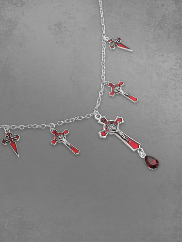 Gothic Halloween Water Droplet Cross Bat Necklace and Earrings Set