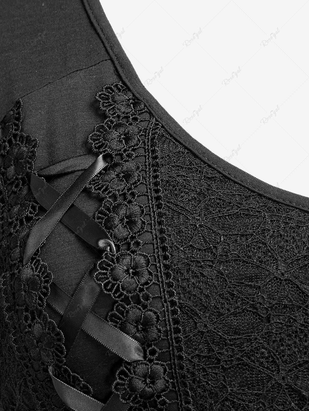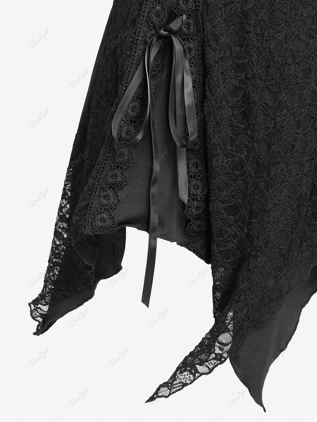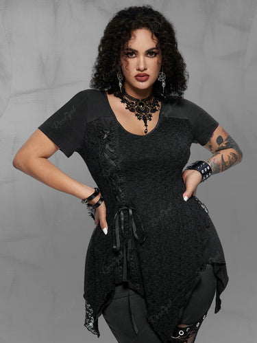 Gothic Plus Size Lace Panel Lace-up Asymmetrical Top