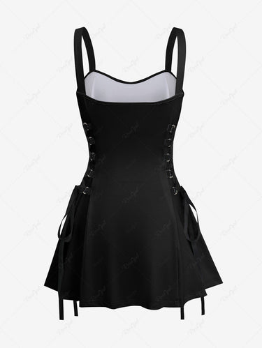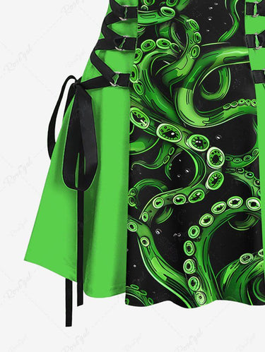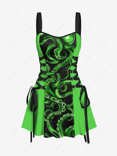 Gothic Neon Color Octopus Lace Up Print Backless A Line Tank Dress