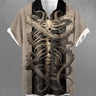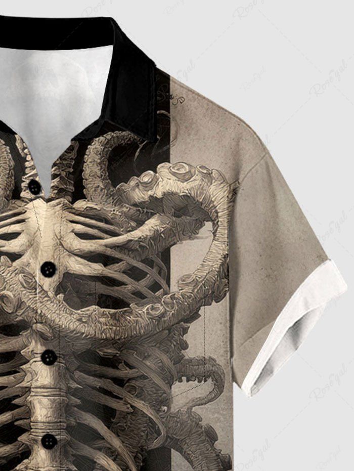 Gothic Plus Size Skeleton Octopus Print Button Pocket Shirt For Men