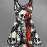 Gothic Plus Size Skull Skeleton Chain Print Crisscross Strappy A Line Cami Dress