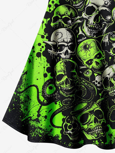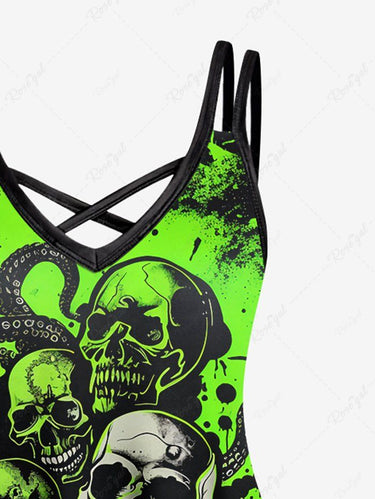Gothic Plus Size Skulls Octopus Painting Splatter Print Crisscross A Line Cami Dress
