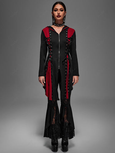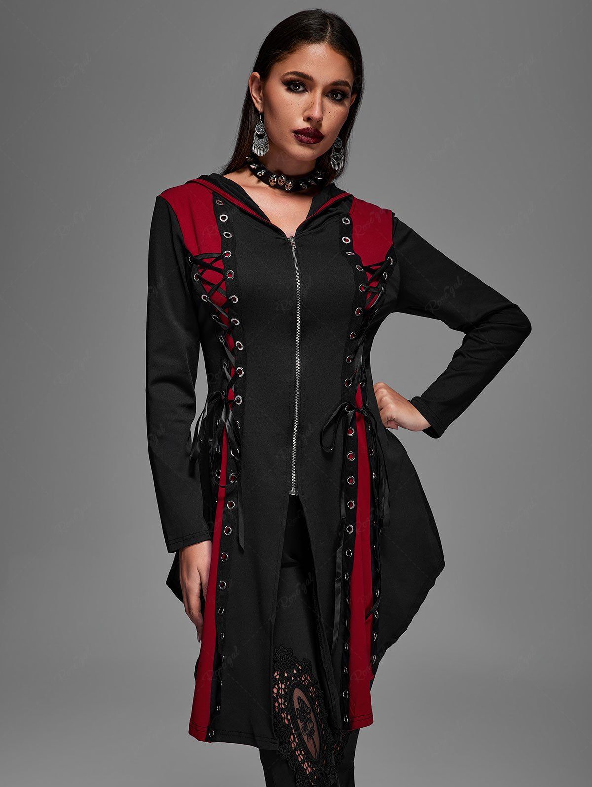 💗Chiara Loves💗 Plus Size Hooded Lace Up Grommets Colorblock Gothic Coat