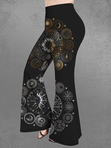 Gothic Plus Size 3D Sun Moon Star Glitter Print Flare Pants