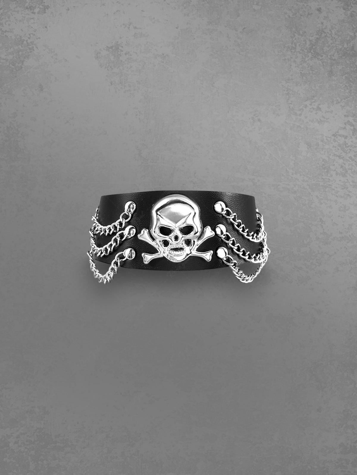 Punk Rock Gothic PU Leather Skull Chain Studs Bracelet