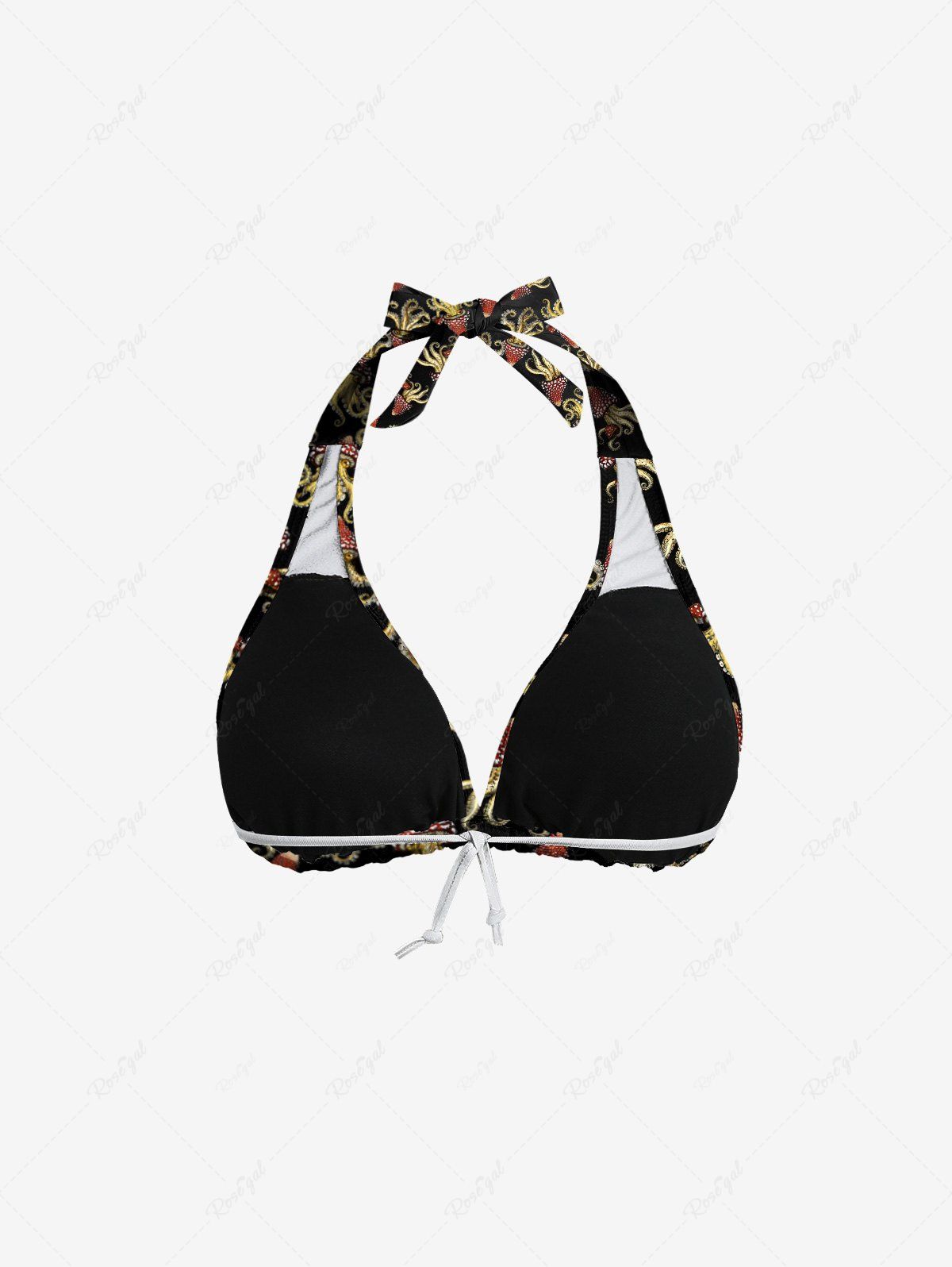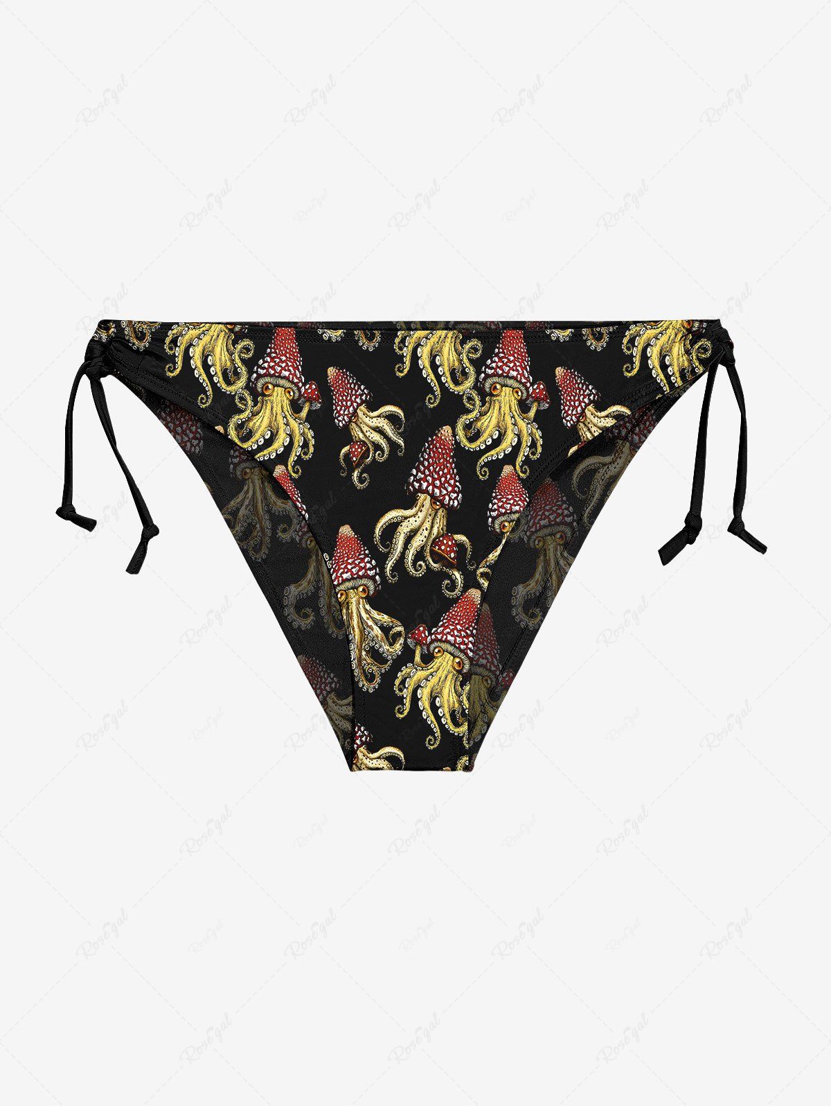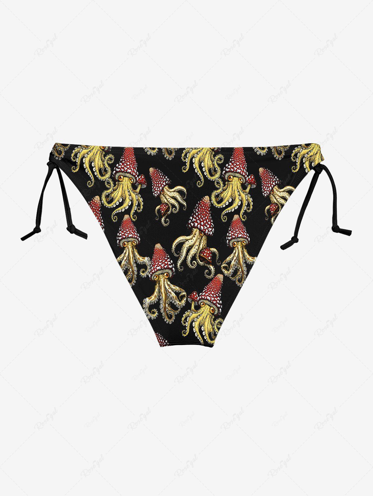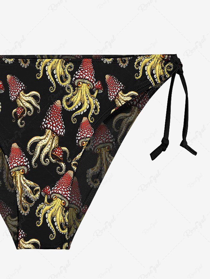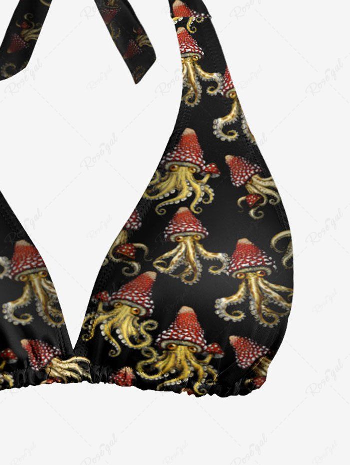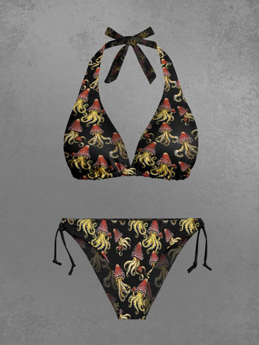 Gothic Squid Octopus Mushroom Print Plunging Halter Backless Bikini Set