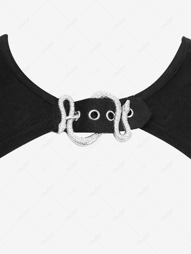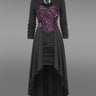 Gothic Plus Size Floral Flocking Ruched Ruffles High Low Patchwork A Line Cami Dress and Snake Buckle Crop Top Set