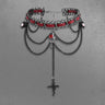 Gothic Punk Cross Flower Chain Layered PU Strap Chunky Choker Necklace