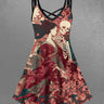 Gothic Plus Size Cherry Blossom Skeleton Ukiyoe Print Crisscross Strappy A Line Cami Dress