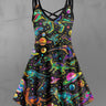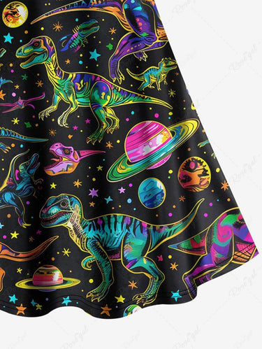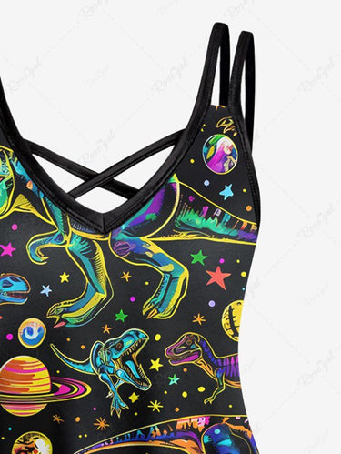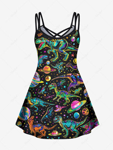 Gothic Plus Size Colorful Dinosaur Planet Stars Print Crisscross A Line Cami Dress