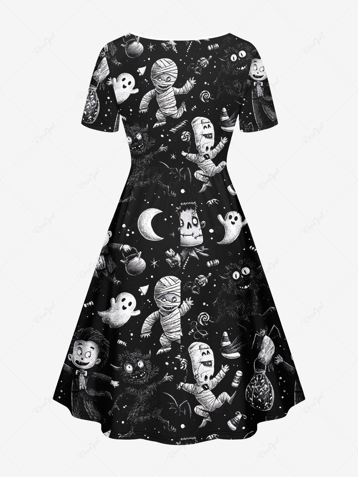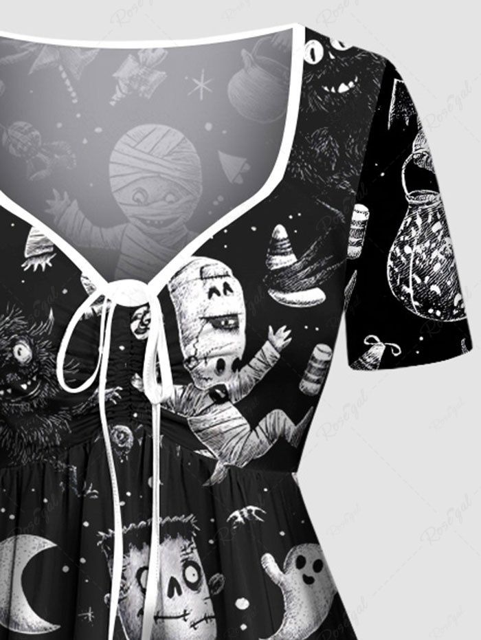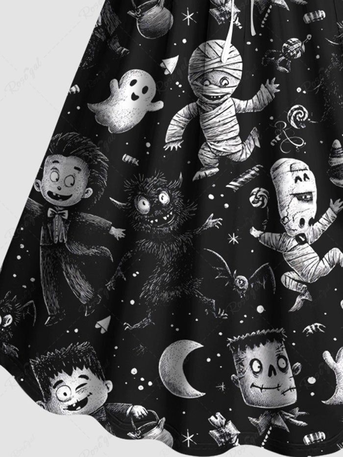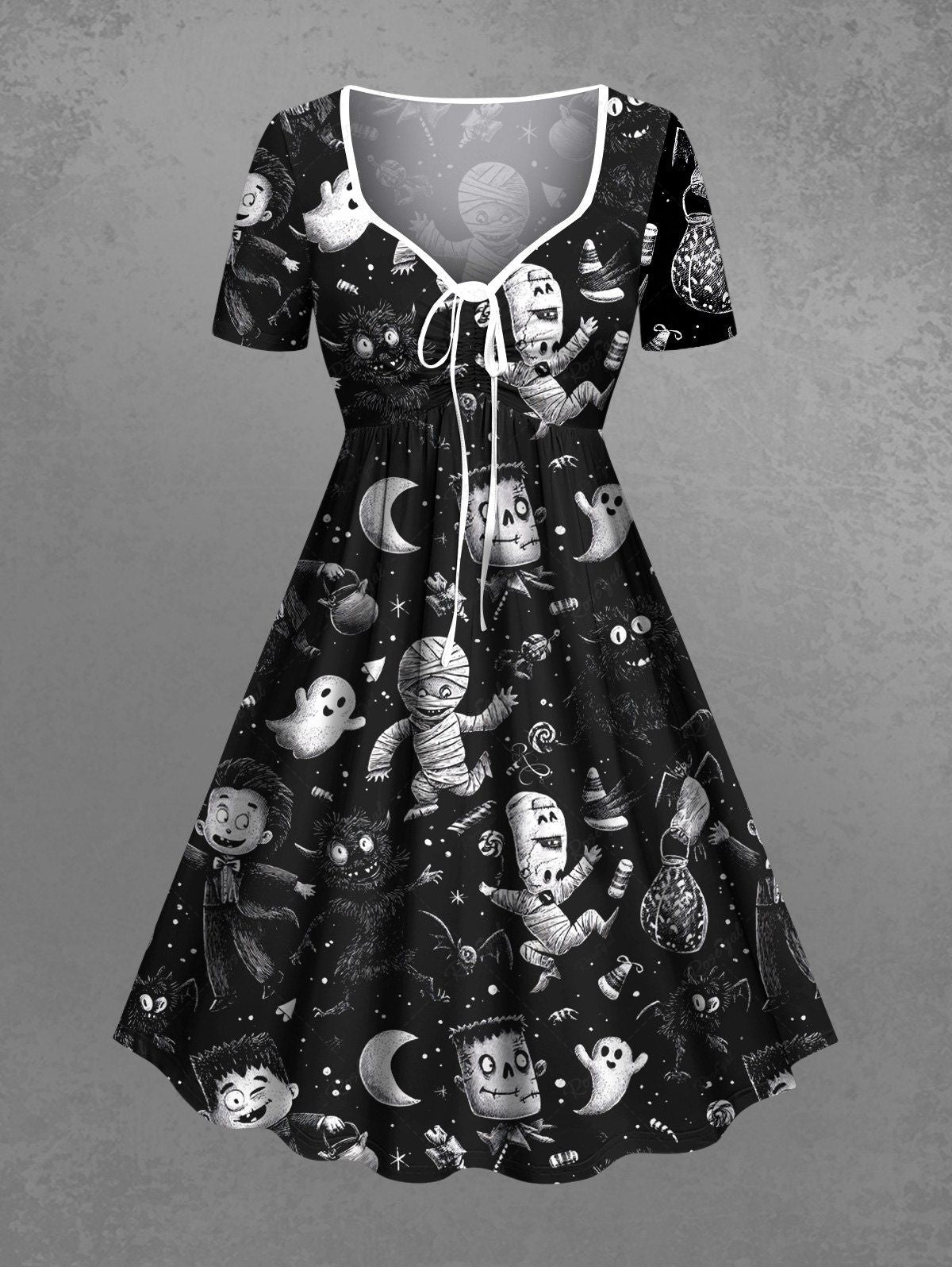 Gothic Plus Size Halloween Ghost Moon Mummy Print Cinched Dress