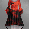 Gothic Plus Size Halloween Bat Trees Print Ruched Flare Sleeves High Low Dress