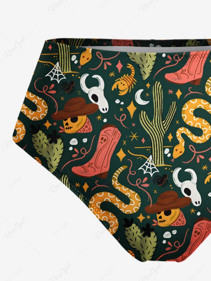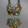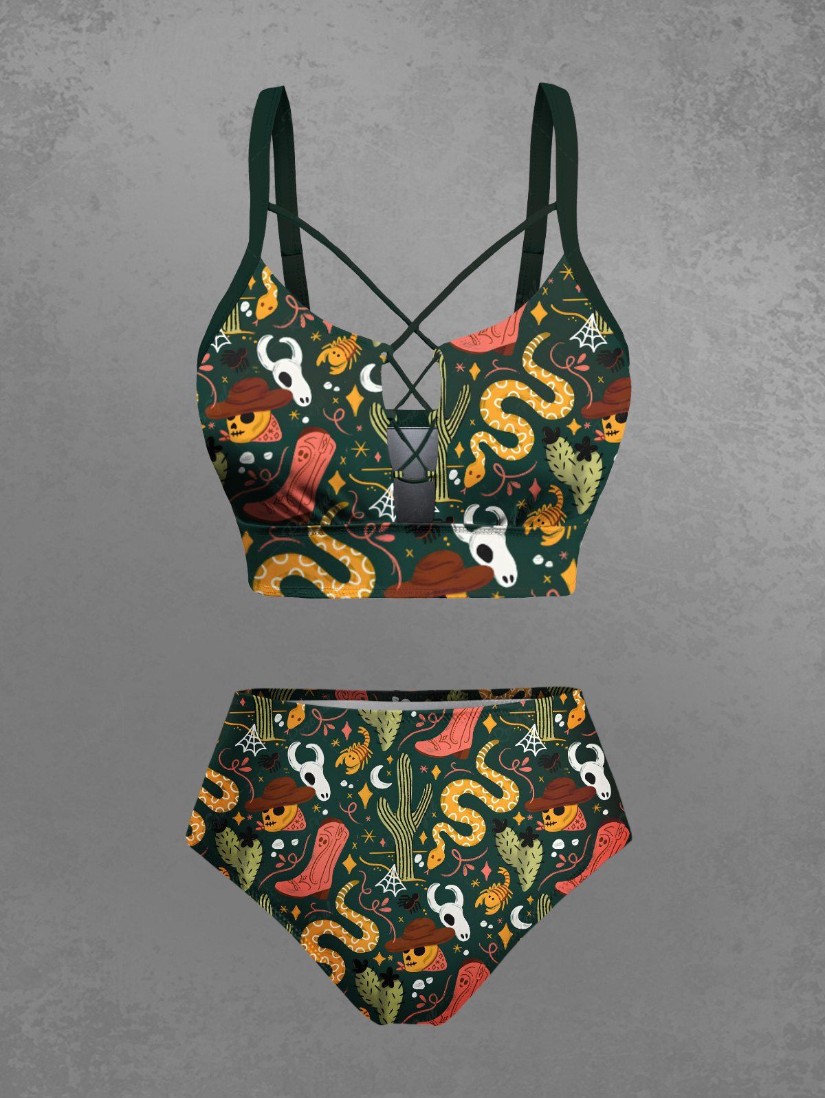 Gothic Skull Sheep Head Snake Cactus Print Hawaii Lace Up Tankini Swimsuit (Adjustable Shoulder Strap)