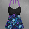 Gothic Ombre Skull Floral Print Hawaii Twist Halter Backless Tankini Top