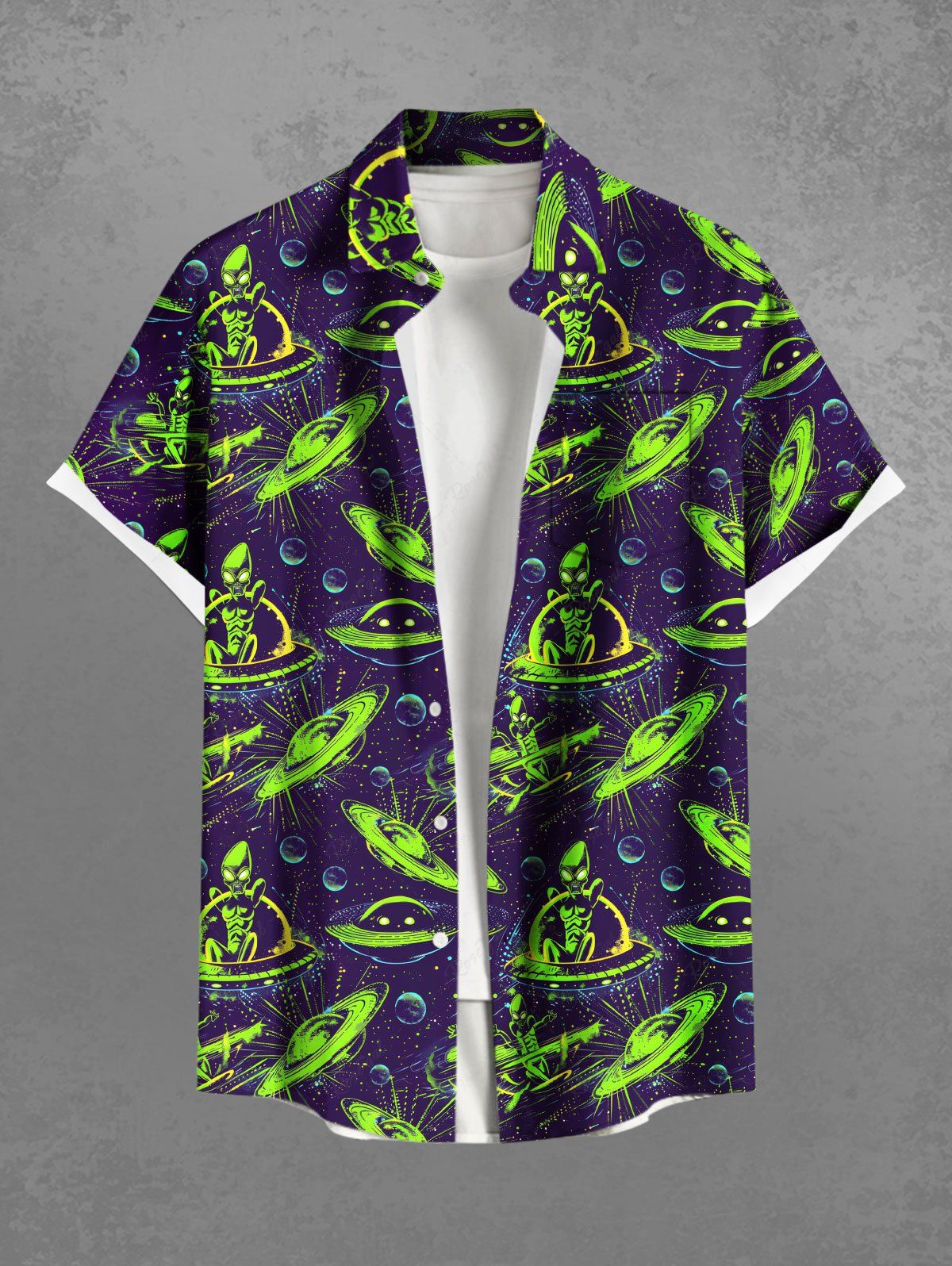 Gothic Plus Size Alien UFO Galaxy Print Button Pocket Shirt For Men