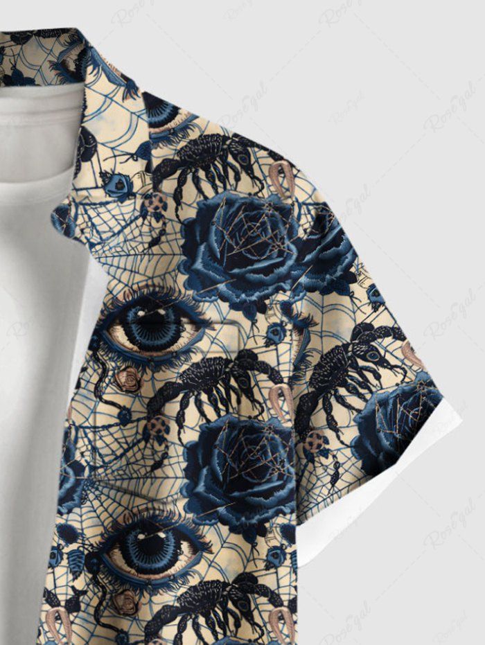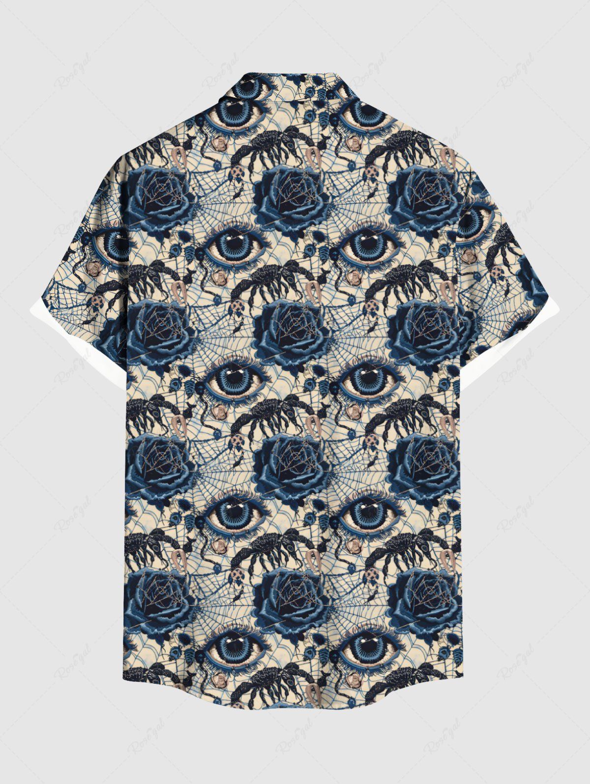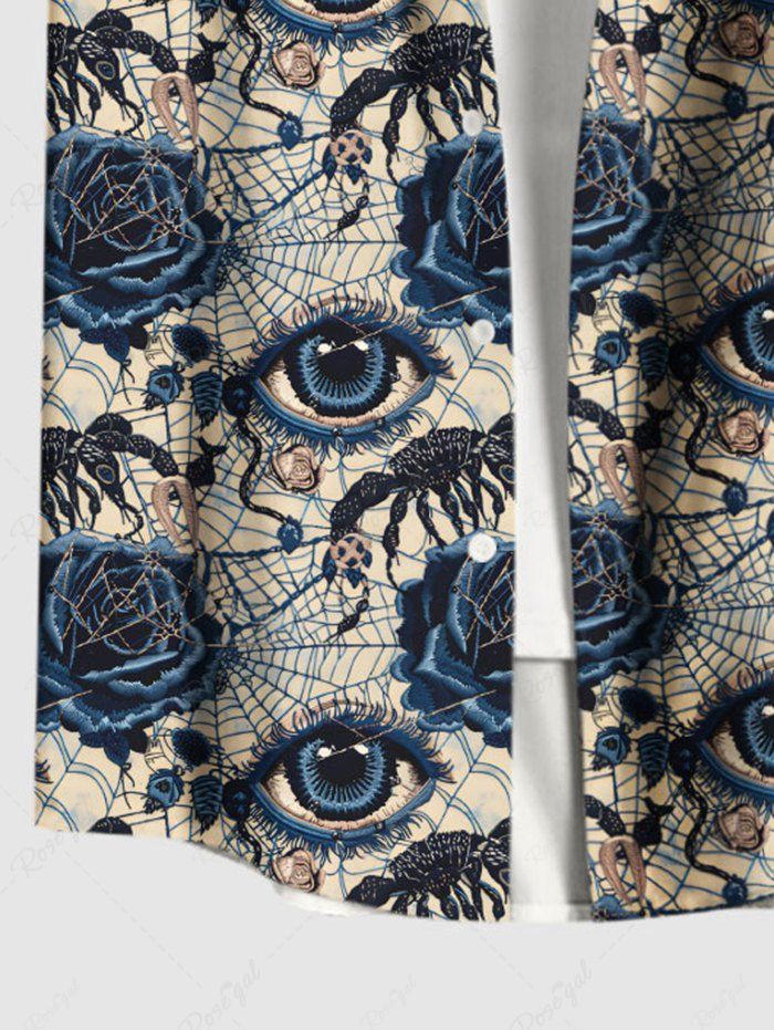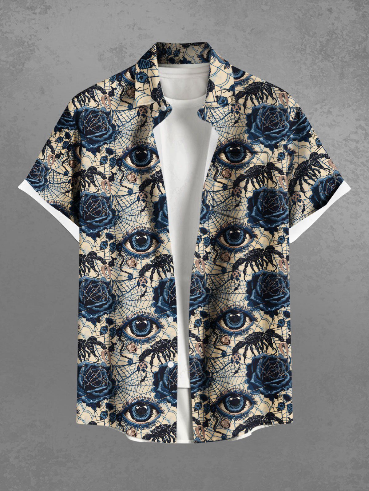 Gothic Plus Size Eye Flower Spider Web Insect Print Button Pocket Shirt For Men