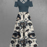 Gothic Plus Size Flower Eye Spider Web Insect Print Cold Shoulder Crisscross A Line Maxi Dress