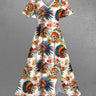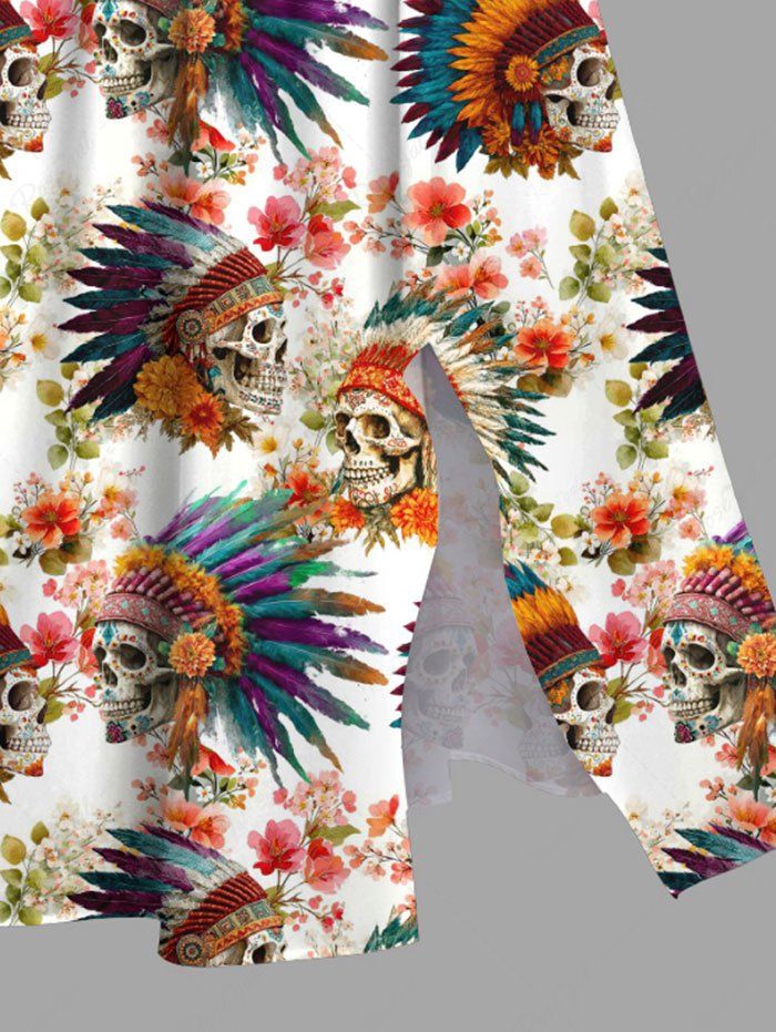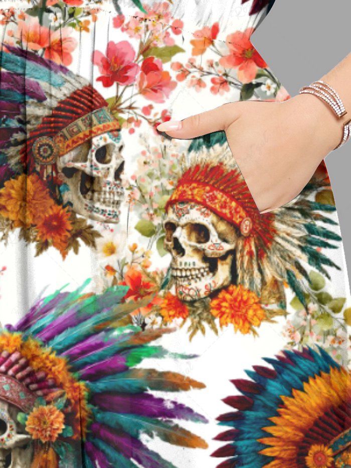 Gothic Plus Size Flower Skull Ethnic Print Hawaii Split Pocket A Line Midi Dress