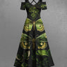 Gothic Plus Size Ombre Butterfly Print Cold Shoulder Crisscross A Line Maxi Dress