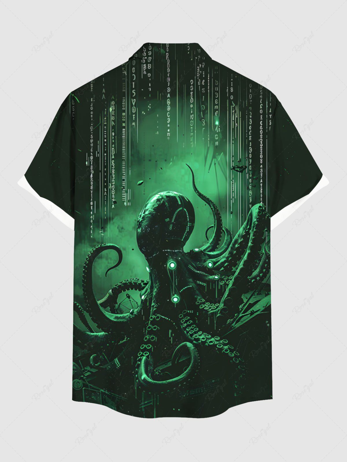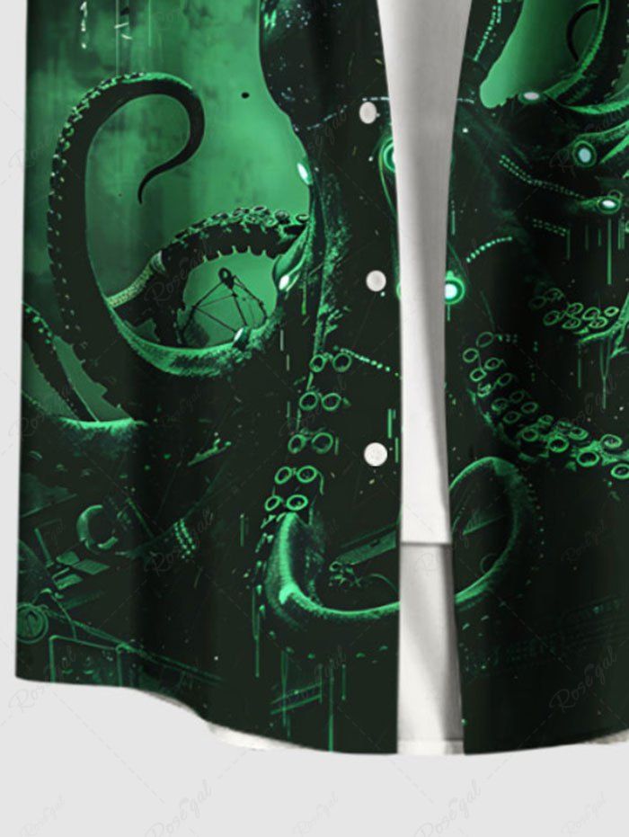 Gothic Plus Size Ombre Octopus Print Hawaii Button Pocket Shirt For Men