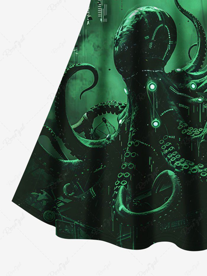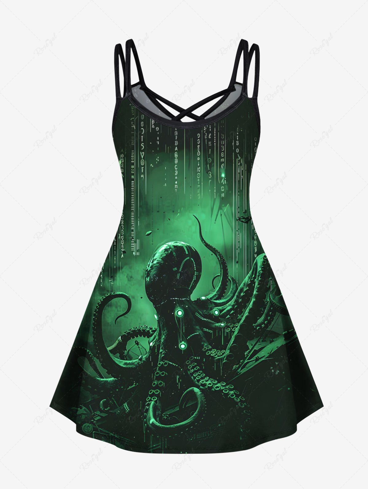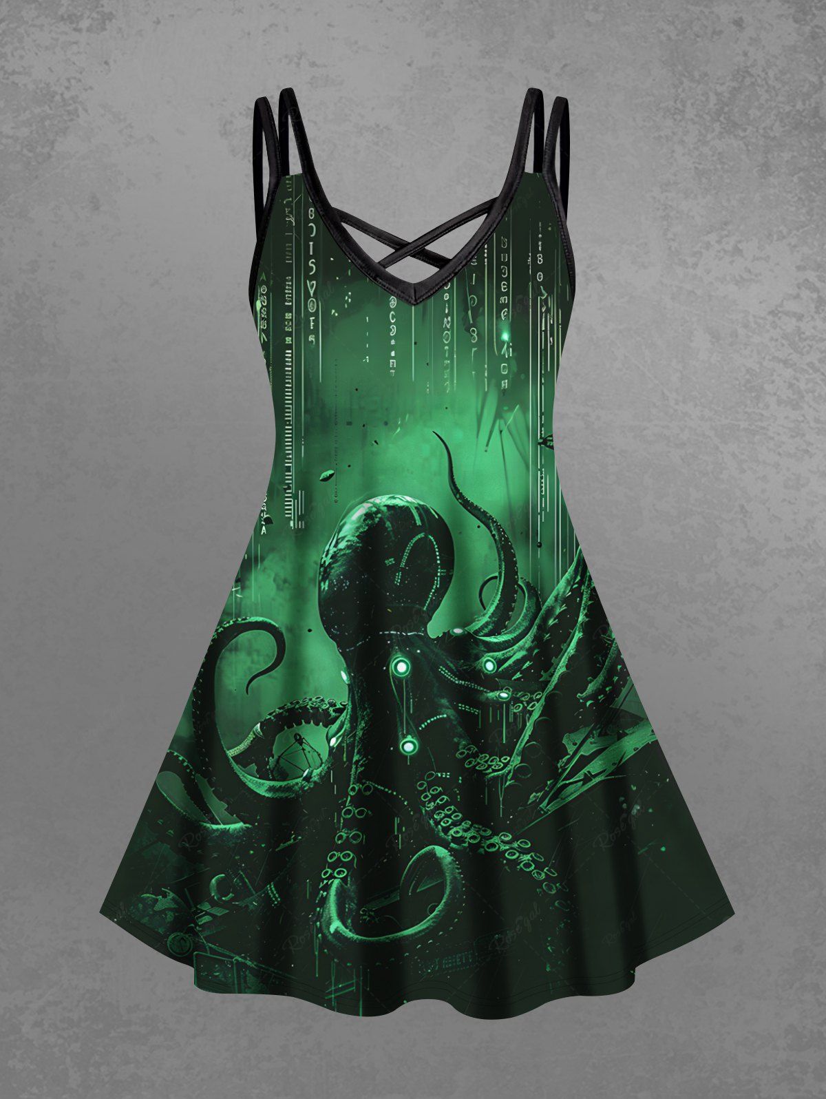 Gothic Plus Size Ombre Octopus Print Hawaii Crisscross Strappy A Line Cami Dress